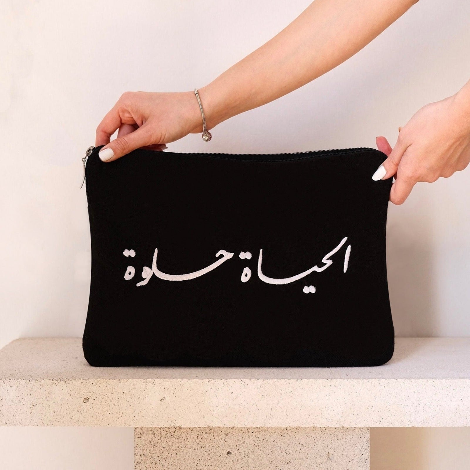Embroidered Cotton Laptop Sleeve | Life is Beautiful